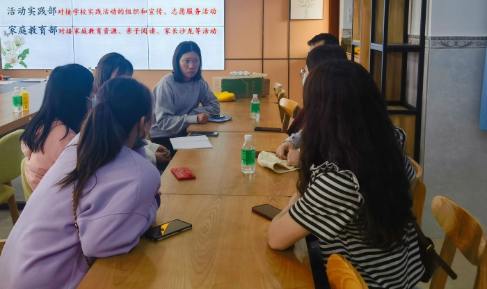 随后,余主任向家委们汇报了本学期学校育人工作及活动实践计划,获得家委们的一致认可。与此同时,家委们还一致通过了家委会会议制度,落实家委会各大部门分工,筑起了家校良好沟通之路。接着,梁耀昌副校长向家委们小结了开学以来学校、班级、学生的情况,组织家委们分成三组,围绕“教学、活动、家庭教育”三大内容,引导家委们各抒己见,为学校发展建言献策。家委们表现十分积极,讨论热烈,每组代表向大家汇报了讨论结果,对学校的发展起到了重要作用。