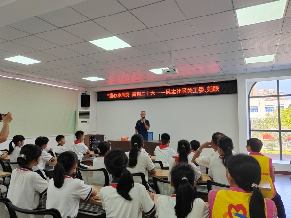 6月28日下午,民主小学五(1)中队的队员在林宗技党委书记的带领下,来到爱国主义教育党史学习教育基地,组织开展“童心永向党,喜迎党的二十大”学习百年党史活动,庆祝中国共产党成立101周年主题党日活动。