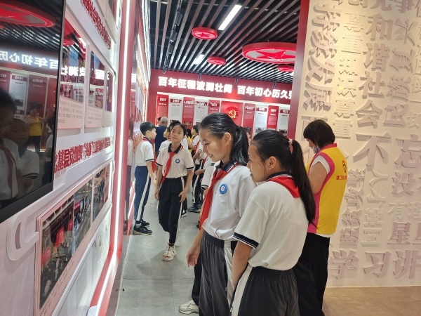 随后,队员们参观了爱国主义教育党史学习教育基地。在参观过程中,队员们跟随着宣讲员满怀激情的讲解,一起重温了中国共产党101年不屈不挠的奋斗历史与发展历程。