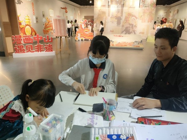 本次亲子活动分为观展环节、艺术实践和活动访谈几个部分。首先大家跟随展馆讲解员的介绍去了解中国漫画的发展历史和中山籍漫画名家及其代表作,随后大家又兴趣盎然地探究起“漫画中山 遇见非遗”展厅内的每一项中山非遗文化,同学们通过解读文字、欣赏漫画的方式与家长一起分享自己所思所感。展览现场设置的富有趣味的打卡互动装置,更是激发了同学们深入了解中山非遗文化的热情。在接下来的临摹和写生环节,鄢婷、李尚雅、李振华三位美术老师分别对孩子们进行了现场指导,同学们表现出极大的热情和表现欲。最后,课题组谈喜金和余丽苑老师针对本次美育实践活动进行了亲子访谈,家长们纷纷表示:此次亲子美育活动非常有意义,不仅让星空体育对中山非遗文化有了进一步的了解,更是感受到中山非遗文化的独特魅力和时代价值。