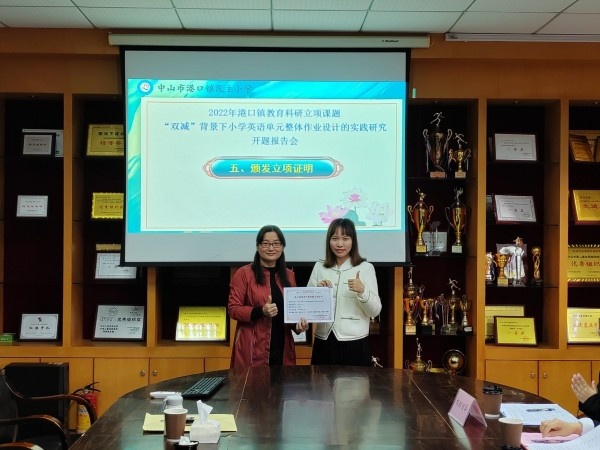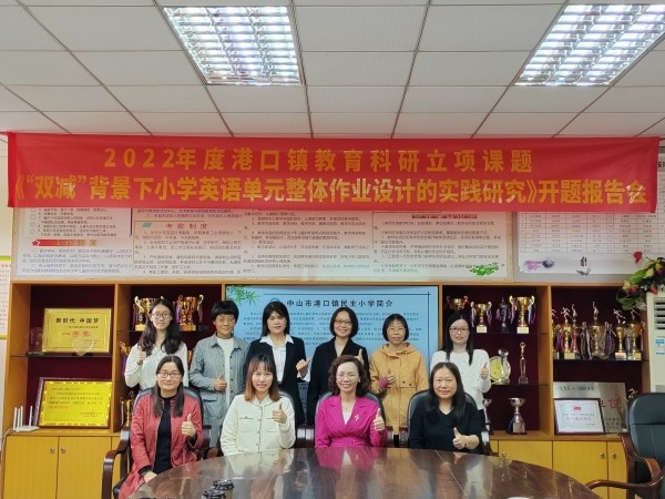 春风送暖,万物复苏。2023年4月4日上午,港口镇民主小学镇级课题《“双减”背景下小学英语单元整体作业设计的实践研究》开题报告会在学校荣誉室举行。港口镇教育和体育事务中心教研专干吴涛涛老师、百千万人才培养工程名师梁艺娟老师、西街小学徐艳丽副校长、还有港口镇民主小学李菲菲副校长及课题组的成员老师们出席了本次开题报告会。会议由教务处杨雨主任主持。