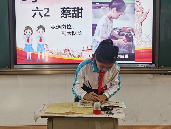 竞选开始,各候选人逐一亮相。演讲环节,他们个个精神抖擞,胸有成竹,有的娓娓动听,有的铿锵有力,表达了自己对少先队工作的热爱以及做好工作、服务他人的坚定信心。才艺展示更是精彩非凡,候选人们拿出了十八般武艺,各展风采:舞蹈表演,激情飞扬;倾情演唱,声声悦耳;真情朗诵,字字入心……他们自信从容、热情真诚,展示着自我风采,也真切地表达了对少先队工作的热忱与决心。情景答辩可谓是斗智斗勇,候选人们用丰富的知识储备,沉稳大气的台风,准确地回答每一道题,展示了少先队员自信阳光、勇于担当的精神风貌。