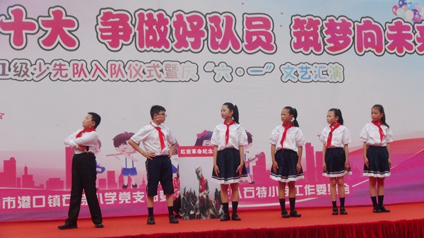 万木葱茏,惠风和畅。为了喜迎党的二十大胜利召开,增强少先队员的组织归属感,为全校师生搭建展示个性特长的舞台,5月30日下午,石特小学举行了“喜迎二十大 争做好队员 筑梦向未来”2021级少先队入队仪式暨“六一”文艺汇演活动。出席活动的嘉宾、领导有:港口镇体育和教育事务中心刘宪军主任,石特社区党委副书记梁伟权,石特社区党委委员黄丽娟,石特社区关工委成员、退休教师吴锦洪老师,石特社区关工委成员、穗安村小学退休教师梁添胜老师,石特小学党支部书记、少工委主任苏少丽校长,学校德育处梁森明主任,学校教务处吴伟卿主任,学校德育处原家惠副主任。