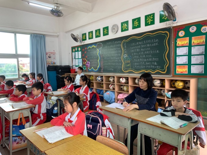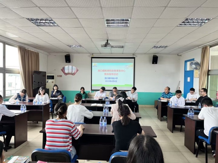 为深化新时期课程教学改革,落实立德树人根本任务,深入推进“双减”工作落细落实,促进义务教育高质量发展,2023年4月6日上午,港口镇教体文旅局副局长刘长路、港口镇教育和体育事务中心主任张育文、副主任刘浩平率中心教研成员莅临中南小学开展教学视导与推门听课活动。中南小学校长丘茶芬及相关行政和教师参与了本次活动。