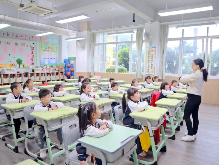 接着宝贝们还到小学部的课室亲身体验小学课堂。小学老师的上课方式让孩子们感到新奇无比,对幼儿园的宝贝而言,小学是一个既陌生又神奇的地方。他们满怀期待的走进教室,坐在座位上开心地参与课堂活动,回答老师的提问,与小伙伴积极互动,激动和好奇在脸上洋溢出来。除了上课,宝贝们还观看了哥哥姐姐们庄严的升旗仪式、精神抖擞的早操等,宝贝们对哥哥姐姐的表现都竖起大拇指,更期待自己能成为一名优秀的小学生了!