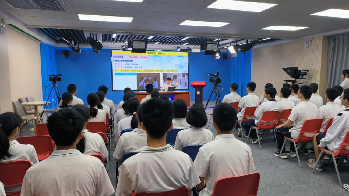 为加强班集体建设,提升班级文化品质,凝聚班级发展力量,4月22日,高一年级组利用级会时间召开“学习优秀经验 创建幸福集体”主题级会。级会由高一(20)班李梓蕾同学主持,2022年中山市中小学幸福领航特色班集体高二(6)班班委代表主讲。