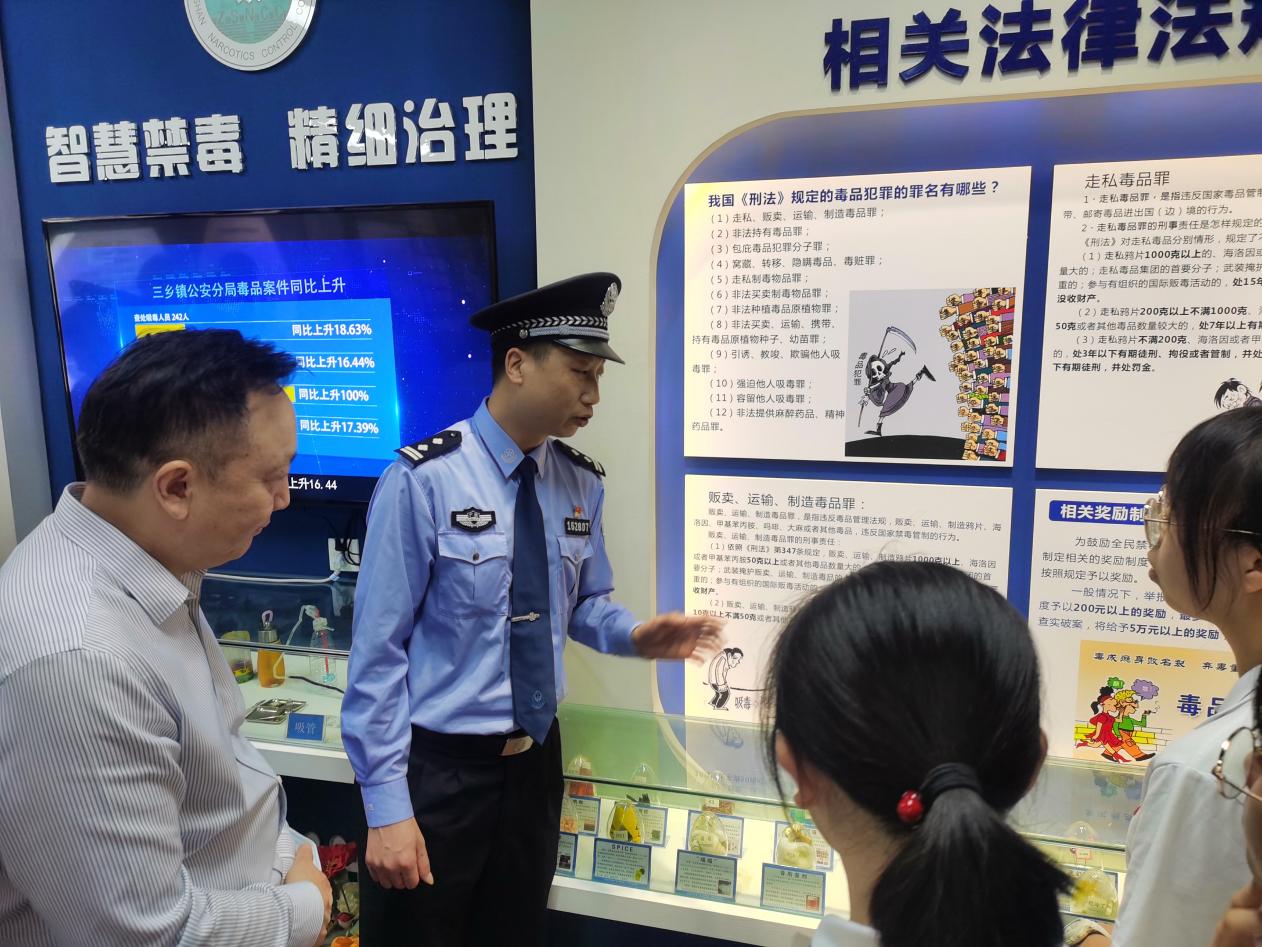 为增强青少年毒品预防意识,更有效开展毒品预防教育,4月12日下午,中山市桂山中学禁毒教育基地揭牌仪式在三乡谷都派出所顺利举行。谷都派出所马观源所长、江剑辉副所长,桂山中学董再明校长、陈福生副校长等领导出席了揭牌仪式。