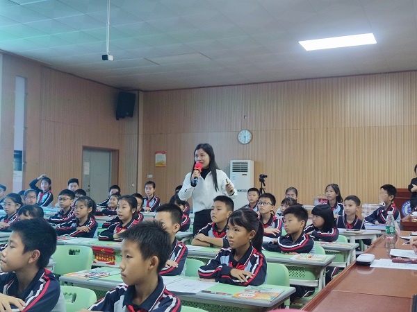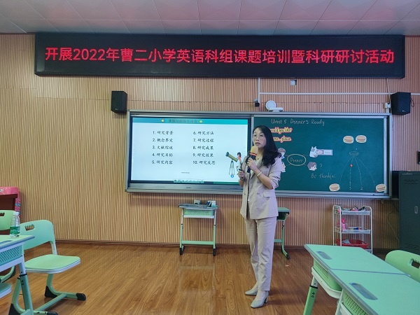 本次活动邀请到中山市实验小学英语科组长陈玉河老师参加,曹二小学麦彩英副校长以及曹二小学、曹一小学全体英语老师参与了本次教研活动,上荣小学的老师则通过线上直播的形式参与。