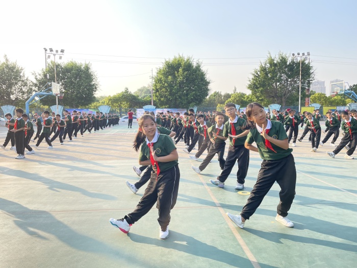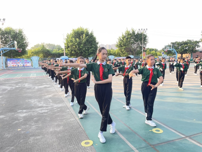 运动在日常,广播操是学生每天锻炼身体的重要载体。每天以饱满的精神、规范的动作做好广播操,不仅能强健学生的体魄,传承粤文化,更能磨炼学生的意志力。随着音乐响起,比赛正式拉开了帷幕,朝气与活力在每个同学的身上洋溢,意气风发的少年齐步走来,每一个动作都铿锵有力,口号响亮,动作整齐划一,展现出新时代曹三学子昂扬进取的姿态和强烈的集体荣誉感。粤韵悠悠,育人育美!粤韵操以点带面,把粤剧的种子播撒到校园,得到更广泛的传承,激发学生民族自信和民族自豪感,展现了粤剧戏曲的音乐之美、动作之美,让文化传承的火种在学生们的心中扎根、发芽、生长!鲜衣怒马少年时,且操且舞且从容。曹三小学的学子们舞动青春,放飞梦想,愿他们都能成长为自己喜欢的模样。与爱同行,未来可期 !