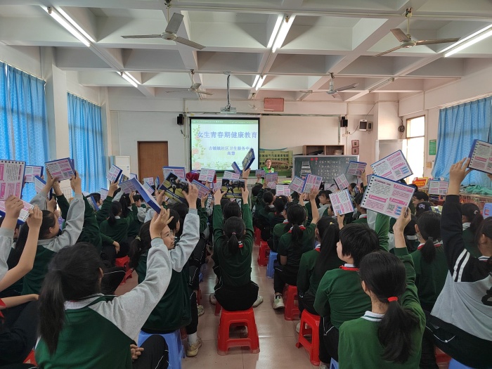 在讲课过程中,古镇镇社区卫生服务中心高慧医生结合直观而丰富的图文课件,向参会女生们细致、形象的介绍了进入青春期后女生身体发育和心理发展特点,以及所要面临的问题,并且引导女生们该如何对待、如何处理的方法和方式,从心理和生理两方面帮助女生正确面对进入青春期后生理和心理的变化。
