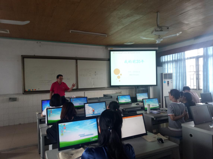 在课堂中,肖校长和大家一起回顾了自己教师生涯的每一个重要历程。从他的第一个工作地方内蒙古到现在工作的广东中山古镇;从担任高中普通教师到现在的小学行政人员,他都感受颇深。他认为不管在哪一个岗位,都要秉承着负责任的态度,勤勉工作,不要怕辛苦。