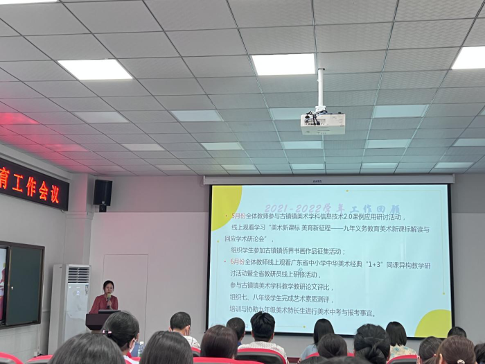 会议最后,镇教体中心廖秋菊老师作了总结性发言。她充分肯定了古镇镇美育教研组长们的工作实效,并指出本学期的美育工作应当围绕《义务教育艺术课程标准(2022版)》开展形式多样的活动,让每位美育教师深入领会新课程标准的精神和要求并落实于课堂,让教师和学生都获得成长。