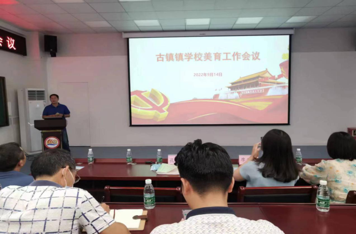 为进一步提升古镇镇中小学美育教育教学实效,部署2022年秋季学校美育工作,推进区域美育发展,发挥课堂美育效果,2022年9月14日上午,古镇镇美育工作会议在海洲第一小学报告厅顺利开展。会议由镇教体中心艺术专干孔国范老师主持,镇教体中心廖秋菊老师、全镇美育专职教师及各校书法科组长参加了此次活动。