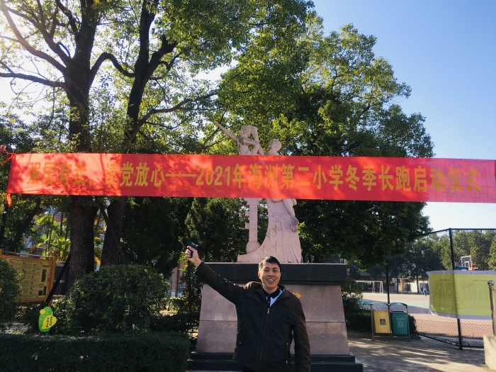 接着,副校长刘冠贤鸣枪宣布海洲第二小学2021-2022学年“我运动、我健康、我阳光、我快乐”冬季长跑正式启动。