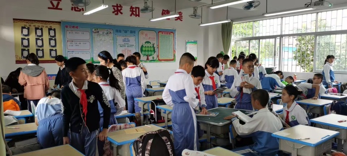 11月15日,袁丽好老师在五(2)班执教《植树问题》一课,她通过猜谜的方式导入“植树问题”,迅速调动起学生的求知欲,通过观察比较、动手操作、合作交流等活动探究新知,经历和体验“数形结合”“化繁为简”的解题策略和数学方法。