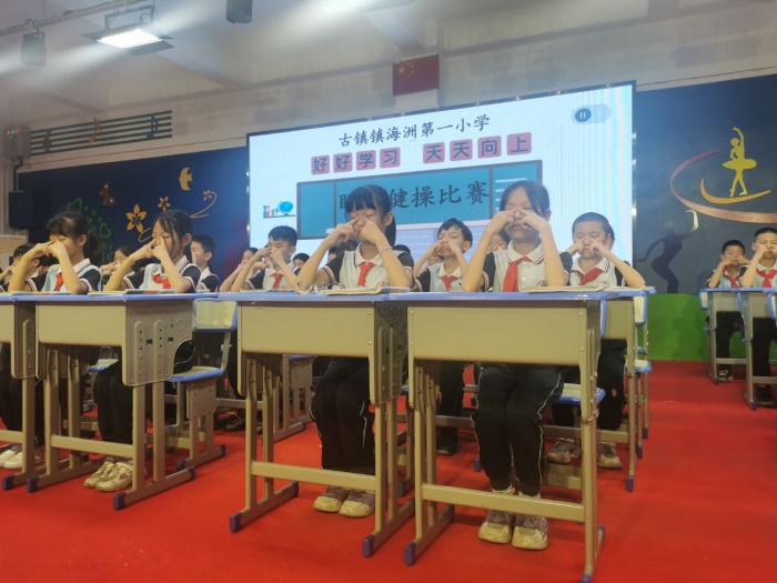 眼睛是心灵的窗户,每个人都要爱护自己的眼睛,眼保健操可以缓解眼部疲劳,为了进一步加强预防近视宣传教育,培养学生良好的用眼卫生习惯,降低学生近视率,进一步提高学生做眼保健操的质量,海洲第一小学在4月25日、27日、28日分三天利用下午托管时间进行低中高年级的眼保健操比赛。