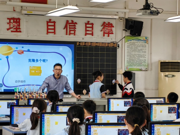 本次教研活动以“重信息素养,育创新意识”为主题,研讨活动分课例展示、评课议课和主题研讨三个环节。第一环节中,海洲第一小学的郭伟斌老师和新徽学校的陈微玲老师都为教研组成员展示了《飞船游太空》这一课例。同课却不同构,郭老师注重学生整体思维的提高,在教学中创设了三个活动,从“飞船”到“流星现太空”,再到“流星雨下落”,学生在三个活动中互帮互助,协作学习,在问题导向引导中逐步掌握技能。陈老师则注重信息技术理论的培养,通过引入微课与学习单,极大丰富了课堂的趣味性与生动性,学生在老师的引导下逐步掌握每一个操作技能。两位老师精彩的课堂可谓是各具特色,为现场观摩老师留下了深刻印象。