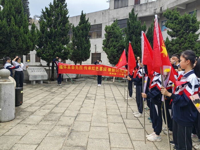清明至,哀思涌;缕缕春风,绵绵细雨,说不尽对革命烈士的无限深情,道不尽对烈士英魂的无尽哀思。2023年4月3日下午,在中共中山市古镇镇海洲第一小学党支部的精心组织下,全体党员、学校行政、各班辅导员老师、团员教师以及六年级的同学们一同前往袁世根烈士墓开展“缅怀革命先烈,传承红色基因,做新时代好少年”清明祭扫活动。