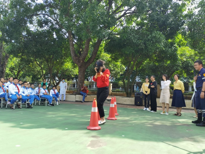此次活动内容丰富,包含了地震自救知识、火灾逃生知识、防触电知识以及酒驾危害。活动以学生体验、实践为主:地震自救知识环节,由市应急办提供的宣传大篷车播放地震视频资料,营造了紧张严肃的气氛,被邀请的同学们坐在大篷车创设的情景“8楼的家”里,剧烈摇晃,头晕目眩,真实性极高的情景演练让学生切身感受到地震的巨大危险性,让他们在实践中明白,地震中要协作配合,关好水、电、燃气,打开大门,躲在坚固的安全三角区;火灾逃生知识环节、主讲员也是先让同学们在大篷车创设的火灾情景中作出本能的反应,侧重提醒同学们在湿毛巾捂住口鼻时要将毛巾折叠4次,以便有效过滤有害物质,指导学生正确使用防毒面罩,特别强调演练逃生时避免踩踏事故的发生;防触电知识环节,则由同学们围成一圈,一人手握安全电伏的电源,让同学感受触电的痛苦,从而掌握人导电的常识,顺其自然地让学生记住了遇到触电时首先要安全地切断电源,而不是盲目施救这个关键知识;酒驾危害环节,则由老师们戴上晕眩眼镜过雪糕筒,当间距很远的雪糕筒都被一一撞倒后,学生明白了醉酒状态下人的行为是不可控的,酒驾是一种危害他人,伤害自己的行为。