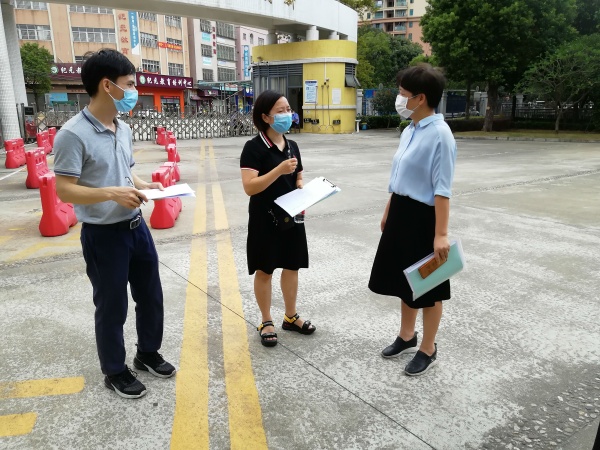 镇督导组成员、镇教育事务指导中心陈和添、汤成宗、廖秋菊、疾控中心廖寿娟、食品药品监督所刘红文等同志分组检查学校的工作。以帮助学校解决问题为目标,细致分析研判返校复学工作情况。张洪娣校长向督导组汇报学校的疫情防控和开学准备工作,镇卫计局副局长、学校卫生健康副校长陈彦翎汇报学校的卫生工作。