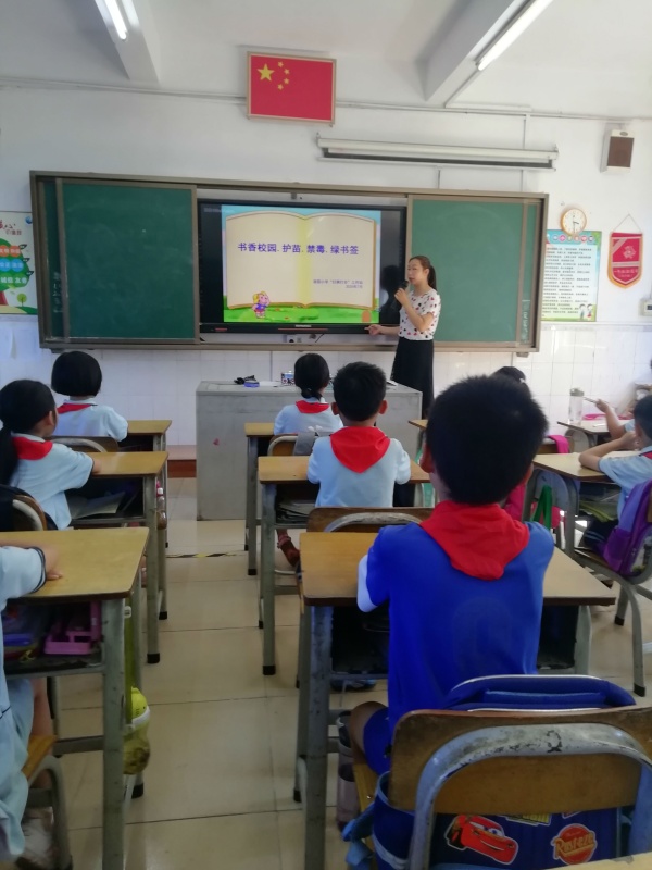 6月29日,沙溪镇港园小学全校开展以“书香校园·护苗·禁毒·绿书签”为主题的班会课活动。