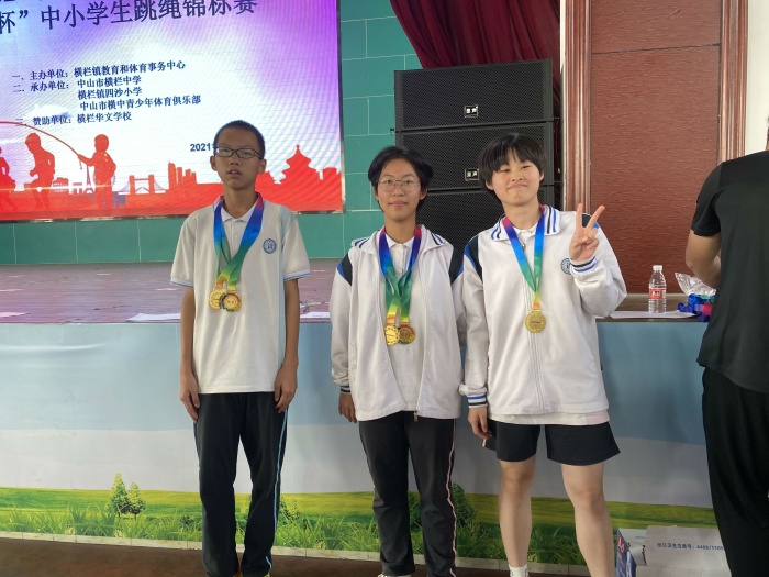 此次跳绳比赛,横栏中学跳绳队以团体总分222分的好成绩遥遥领先,队员们团结拼搏,奋勇争先,勇夺横栏镇第一届中小学生跳绳锦标赛初中组冠军。