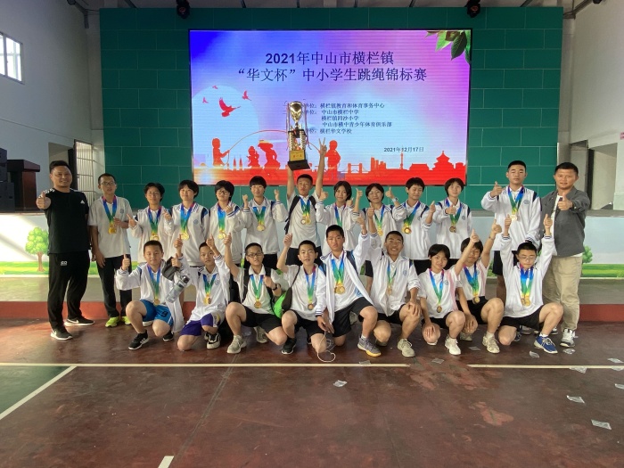 12月17日,在四沙小学举办的2021年横栏镇中小学生“华文杯”跳绳锦标赛中,横栏中学跳绳队经过激烈角逐,荣获横栏镇第一届中小学生跳绳锦标赛初中组冠军!