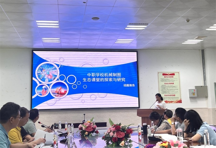 会议首先进行本年度两项市级课题的申请结题,分别是谢燕旋老师主持的 《中职旅游英语微信订阅号的开发与应用》和王富夷老师主持的 《中职学校机械制图生态课堂的探索与研究》。两位课题主持人依次详细汇报了研究方案,分别对课题简介、研究目标、研究过程、研究成果与未来展望等方面做了系统全面的阐述与总结。接下来,5位省级课题主持人(委托人)和5位市级课题主持人分别对在研课题进行了中期汇报,详细讲述了各课题进展情况,汇报过程精彩纷呈,掌声不断。