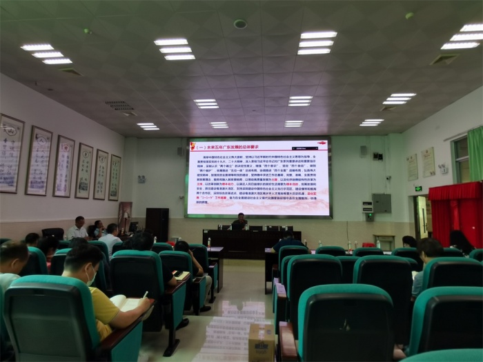 学校党总支书记、校长程少辉围绕省第十三次党代会精神上专题党课,从省第十三次党代会的重要意义、李希书记报告的主要内容、结合学校实际狠抓落实等方面,全面系统、深入浅出地解读省第十三次党代会精神。他说,省第十三次党代会是在广东进入全面建设社会主义现代化国家新征程、豪情满怀迎接党的二十大胜利召开的重要时刻召开的一次十分重要的会议。