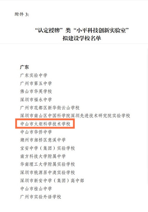 刚刚从共青团中央青年发展部传来喜讯,中山市火炬科学技术学校被评为“认定授牌”类“小平科技创新实验室”拟建设学校。这是自今年2月份该校被确定为中山市中小学人工智能教育第一批试点学校后,在科创成绩上的又一次新跨越和新突破。