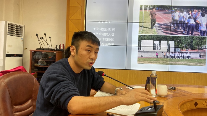 学校德育处袁建副主任则以“班主任平凡而又非凡的一天”为导线,全面详尽地为全体老师描绘了一幅集早读、考勤、跑操、防疫、教育平台、午休、班会、晚修、宿舍管理、体测训练等各方面工作的“班级管理大合照”,充分肯定了半学期以来班主任在班级工作上的无私奉献精神,并对全体老师长久以来对学部各项德育工作的支持与配合表示衷心的感谢。
