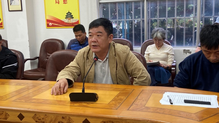 总务处蔡飞翔副主任就目前校园存在地安全隐患及校园疫情防控工作向全体教师做学期中期各项后勤总务工作小结和部署,强调校园在修在建地设施场地一律禁止使用,校园一切教学、德育活动务必以安全为前提来开展。