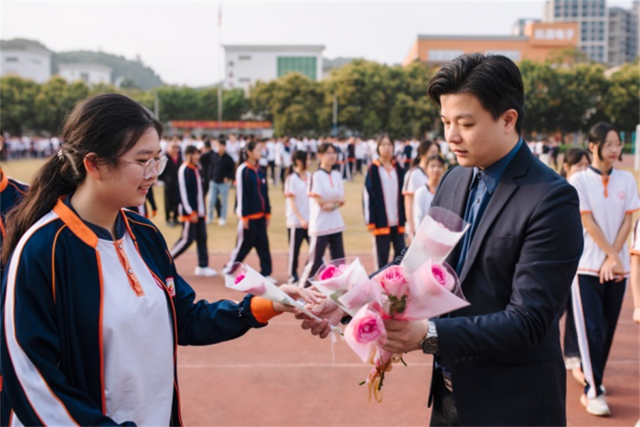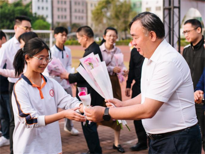 国旗下讲话仪式结束后,学校领导、各学部部长和班主任老师们,纷纷热情地为全校女教师、女学生送上鲜花以及节日的祝福,展现了学校浓厚的人文关怀及师生情怀。