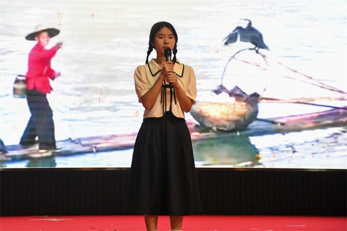 一首饱含深情的《周总理,你在哪里》拉开了本次比赛朗诵环节的帷幕。接着,《永不消逝的声音》《赤潮曲》《最后一次演讲》《光的赞歌》等一篇篇红色经典佳作,在选手们时而慷慨激昂、时而深情委婉的朗读声中,再次绽放出蓬勃的生命力。而《我爱这土地》《中华少年》《我有祖国,我有母语》《中国青年》等爱国主义题材的经典篇目的诵读,则点燃了在场所有观众爱党爱国的激情,引领着大家对红色革命的深切追忆。一篇篇经典佳作,选手们或激昂或婉约,或可爱或清新的朗诵,再将经典诵读与音乐、舞蹈、表演等融合,以不同的形式来表达自己的情感和对诗篇的理解,带给观众们听觉享受的同时,也带来了强烈的视觉冲击和精神的洗礼。