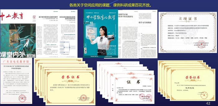 近两年,市教育技术中心还积极联动市教研室、教师发展中心“三位一体”推动学习空间与教师信息技术应用能力提升工程2.0、国家课程数字教材、“爱种子”课堂教学改革、名师工作室等项目的融合,组织线上线下研讨及培训、各类现场展示活动超过100场,有效促进空间常态化应用,形成了一批试点校和实验校。期间,教育技术中心还积极通过组织各级各类课题、论文、案例等教科研活动促进学习空间与教学活动的有效融合。近年市级以上立项课题20多个,各级期刊论文发表近50篇,省级获奖论文53篇。其中《数据驱动提升区域网络学习空间有效性的实践研究》等3个课题成功立项为省级课题,《基于网络学习空间提升区域数据教育资源供给水平的实践探究》等等4篇论文在省级期刊发表。《数据驱动区域教育治理现代化的有效性研究》荣获市第十二届教育科研成果奖基础教育类一等奖,基于空间应用的黄伟祥名师工作室《创课程的构建与创新实践》荣获2021年广东省中小学教育创新成果一等奖。中山市的学习空间建设与应用硕果累累,成为全省首个市级规模“爱种子”课堂教学改革实验区,并获得省级100万专项经费支持。