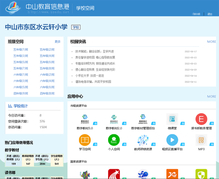 近年来,在市委市政府的关心支持下,中山市出台了《智慧教育行动计划(2021-2023)》,将网络学习空间建设作为重点项目之一整体推进。在市教育体育局领导的指导下,对照教育部《网络学习空间建设与应用指南》要求,市教育技术中心坚持“以人为本、服务贯通;数据驱动,融合发展”的空间建设思路,在教育信息化“十三五”期间全面实施“三通两平台”建设基础上,通过空间“接入畅通”、用户“使用畅通”、多级“资源融通”、师生“信息互通”实现空间“服务贯通”,最后达到师生个性发展及集体智慧共同发展的目标。中山教育信息港作为全市师生网络学习空间公共入口,通过开放平台接口和规范数据标准,纵向连通国家、省级数字教育资源平台,横向与中山纪念图书馆数字资源平台(E启阅平台)、中山市“读书郎”教学平台、“爱种子”教学平台对接,形成“政府资源托底、社会资源补充、个体资源互动”的资源供给方式,为用户提供“统一认证,一号通行”的实名制网络学习空间。在此基础上,学校可根据校情“一校一策”制定空间应用方案,选择满足日常教学需求的应用平台,此经验模式受到国家和省有关专家的高度认可。