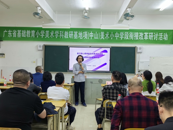 2023年4月27日,在中山市实验中学举办了广东省基础教育小学美术学科教研基地项目(中山)美术小中学段衔接改革研讨活动,我市各普通高中美术教师、基地成员和基地主持人沈文老师出席了活动,中山市美术兼职教研员胡万鸣老师主持了此次活动。
