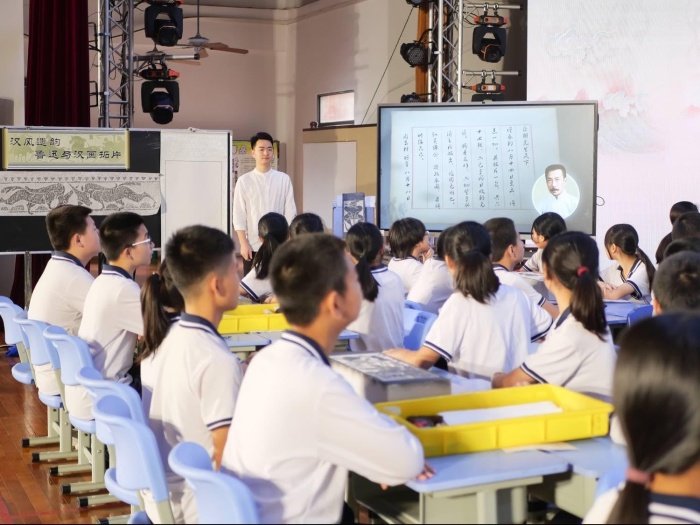 在升平小学校园内,小榄镇各间实验学校早已布置好各自的实验成果展示区,展出学校的中华优秀传统文化教育理念、教育特色、师生作品等,供到场的教师参观学习。26日上午是课例交流环节,由小榄镇东方小学的刘霞老师、南朗街道榄边小学的梁文静老师、小榄广源学校的尹亮老师、小榄镇第二中学的郝同超老师分别展示中华优秀传统文化的吟诵课《蒹葭》《伯牙鼓琴》、专设课《慎终追远,继往开来》和融合课《汉风遗韵·鲁迅与汉画传拓》。精彩的课例引发了听课老师们的热烈讨论,在随后的评课交流环节,老师们畅所欲言,各抒己见,围绕吟诵如何助力古诗文学习、如何引导学生在中华优秀传统文化的学习中关注身边的生活和内心的成长、如何在艺术学科的教学中渗透中华优秀传统文化等话题进行了讨论,明确了中华优秀传统文化教育教学的目标确定、内容和方法选择、目标达成评价等关键问题。