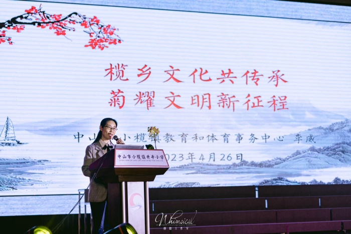 26日下午是经验分享和中华经典吟诵展演环节。小榄镇教育和体育事务中心李威老师作了《榄乡文化共传承,菊耀文明新征程》的专题分享,从“政策指引、地域优势、探索实践、努力方向”四个方面总结了小榄镇和各实验学校的中华优秀传统文化教育经验,获得在场教师一致点赞。在中华经典吟诵环节,小榄镇中华优秀传统文化教育中心教研组、小榄镇教师话剧团、小榄镇教师舞蹈团、小榄镇部分学校的师生通过“品?传统盛宴”“享?菊韵悠扬”“承?爱国之志”三个篇章,展示了内容丰富、形式多样的中华经典吟诵节目。