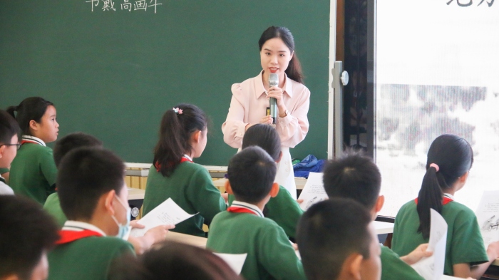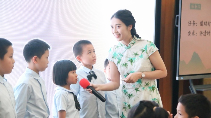 课堂展示环节,由12位来自各镇街的青年骨干教师带来小学语文低、中、高三个学段,包含童话、神话、散文、小古文等文体课例共12节。老师们以学习任务群为主要抓手,以输出驱动理念为核心,创设学习情境,设计一个个环节紧凑的学习任务,让学生在课堂中真正地“动起来”、“学起来”。