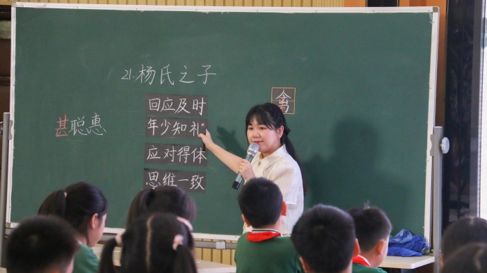 高段的课例共四节,包含文言文和记叙文。执教的是三鑫学校的林欣玥老师、阜沙镇牛角小学的洪倩老师、迪茵公学的王玉老师以及华辰实验中学小学校区的王畅老师。四位老师授课大气沉稳,师生互动和谐。她们基于对单元语文要素的把握,对文本的透彻理解,创设了贴合文本特质和学生心智水平的任务情境。先提出主任务,并围绕主任务设置子任务群,以相互关联的系列学习任务,引领学生进行具有内在逻辑关联的语文实践活动,引导学生去探究、去思索、去发现,让语文学习真正发生。