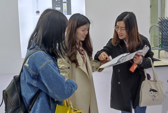 参展团一行参观了多家知名厂商展出的智能交互一体机、智慧黑板、数字化探究仪器、智慧纸笔等现代化教育装备,了解了教育领域的新技术和新产品。老师们还根据自身的兴趣和需求,了解不同类型的教育装备产品。市教育技术中心有关课题组成员着重了解各种实验教学课堂解决方案及技术与教育教学融合应用场景,助力课题组成员进一步研究构建“教、学、管、评、培”五位一体的实验教学体系。来自市直属幼儿园的老师们参加展会之前就搜集小程序上的展商产品介绍,筛选符合学前教育及相关领域的参展商资料,聚焦自己心仪的展商。参观结束后,横栏小学黄雨苹老师表示,作为一线教师,要融合智能化数字教育工具做好教育教学工作,充分发挥其育人功能,实现精准教学。中山市机关第三幼儿园的梁思韵老师则表示,此次A、B两个展区的游戏化装备、数字幼儿园、音乐启蒙教育等产品展示让她印象深刻,产品的设计新颖,操作简便,幼儿可直接感知、亲身体验互动式的课堂,更好地通过教玩具提升他们的探索体验。