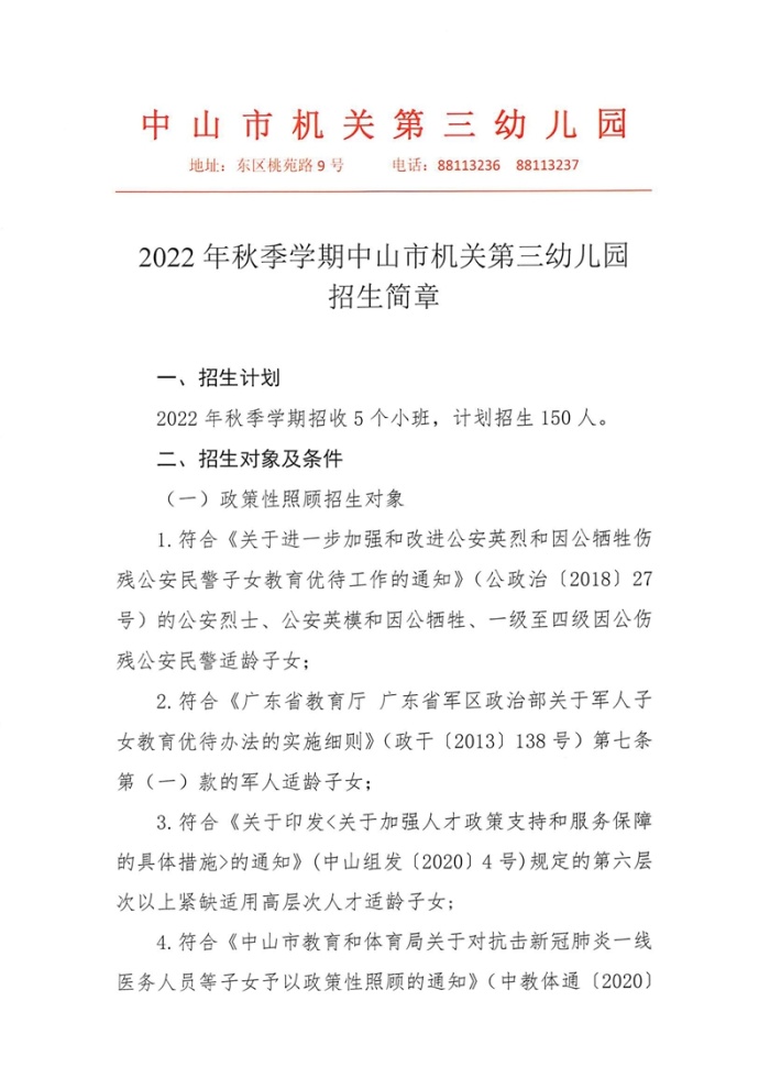 2022年秋季学期中山市机关第三幼儿园招生简章.pdf