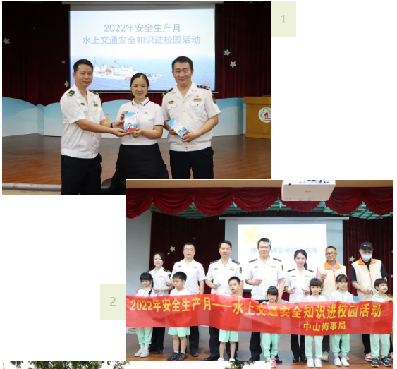 活动最后,中山海事局给幼儿园赠送《中山市水上安全应急手册》,让孩子们通过阅读了解更多的水上安全知识。作为感谢,孩子们也给叔叔、阿姨送上自制的海洋、船舶徽章。