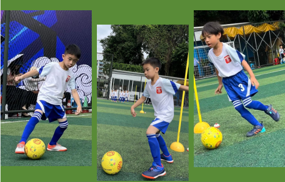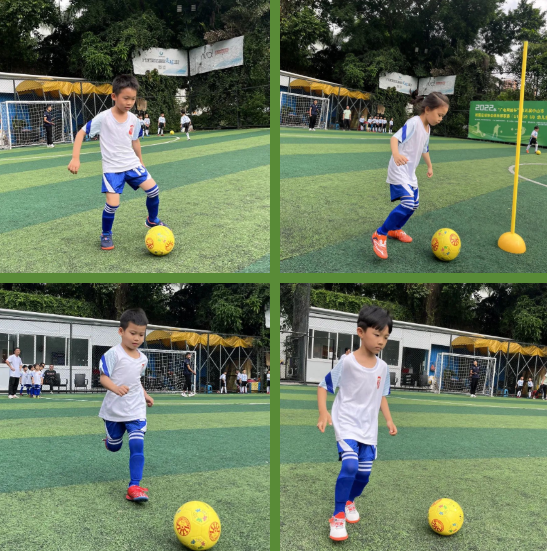 热身游戏环节,蚂蚁搬豆、铃儿响叮当、小小搬运工、夺宝接力赛四个项目考验着足球小将们的运球和控球能力。瞧,小将们精神抖擞、势在必得!一个多月的刻苦训练,让他们动作敏捷连贯,足球在他们脚下听话地迅速滚动,小小的热身项目可难不倒他们!