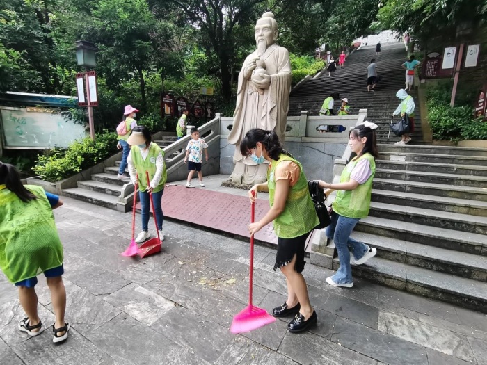 活动过程中学生和家长们不怕累、不怕脏,手持铁夹、扫把等清扫工具,沿华佗山公园清理树叶、杂草、塑料袋、砖瓦石块等垃圾。虽然天气炎热,但大家干得十分起劲,从山脚下一直清理到山顶,经过一个多小时的努力,整个公园变得更加干净整洁,整体环境面貌有了明显提升,路过的市民纷纷向他们竖起了大拇指,对他们放弃个人休息时间,投身公共环境卫生清理表达了由衷的感谢和敬佩。