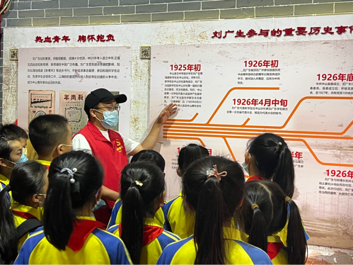 活动现场,故居讲解员带领队员们参观刘广生故居,重温刘广生当年的革命事迹,感悟先辈们用鲜血和生命铸就的责任与担当。随后,三5中队辅导员李诗苑老师也为队员们讲述党史故事,让队员们感受革命先辈们的奋斗历程和革命精神,引导队员们学习党史,增强爱国情感,激励队员们作为新时代接班人的自豪感、荣誉感、责任感。