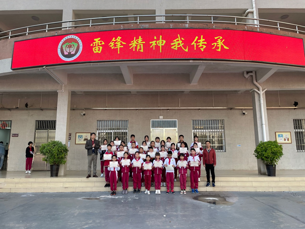 升旗仪式后,少先队员代表魏可儿在国旗下讲话,带领同学们重温雷锋事迹和精神。接着,少先队辅导员黄倩霞老师进行发言。她提到:希望同学们在以后的学习生活中,将乐于助人、无私奉献的雷锋精神付诸于行动。在“学雷锋”活动月的启动仪式上,一批积极踏实、无私奉献的优秀少先队员值日队干受到了表彰。黄老师表扬他们在值日过程中吃苦耐劳、认真负责,发挥了模范带头作用。会后,学生纷纷表示,要向榜样学习,积极奉献。活动最后,学校杨勇强副校长发表了寄语,他强调:疫情防控中有很多默默奉献的志愿者,为控制疫情保驾护航,希望同学们注意疫情防控及预防流感,保护好身体,在生活中多做好事,为生活添光彩。