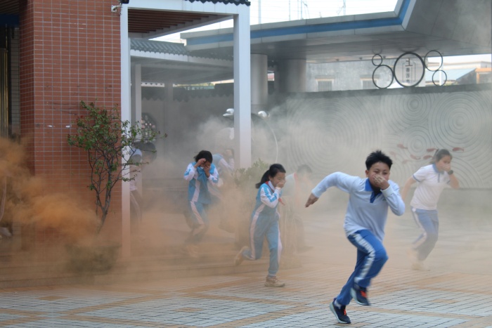 3点55分,随着火灾警报声的响起,全体学生在老师的指导下,按照规定的路线,快速、有序地往楼下撤离,到楼下后跑步前往指定地点集合。各楼层楼梯口、转弯处值班的老师恪尽职守,指挥和疏导学生紧急撤离。学生捂住口鼻,猫腰靠墙迅速撤离,秩序井然。到达运动场后,各年级迅速清点人数,并及时将清点结果汇报给演练总指挥,为后续工作开展提供了数据支持。从警报声响起到最后一名学生撤离到操场,仅用时2分22秒。