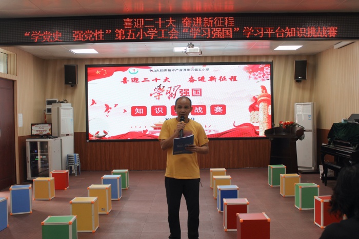 为深入学习贯彻习近平总书记在党史学习教育动员大会上的重要讲话精神,推动党史学习教育在第五小学不断走深走实,进一步加强学校“学习强国”学习平台推广力度,营造全校教师浓厚的党史学习氛围,4月21日中午,开发区第五小学在阶梯室开展了主题为“喜迎二十大 奋进新征程”“学习强国”挑战答题竞赛活动。